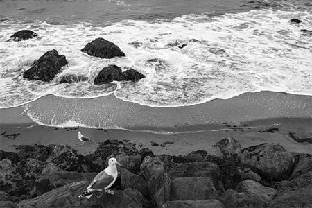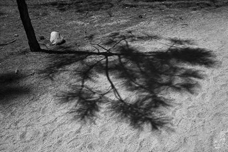 The contemplative spirit of his work is also visible in another photograph; a small plant with broad leaves cradled by a rock with a shoot circling over to the top of the rock. There’s a risk of it being viewed as a binary of the animate and inanimate. But rounded edges of the rock and the encircling branch, the third element in the picture, make it into a picture of ecology. Rock is not passive. Giving off itself, rounding off angularities it supports and germinates life. He rock is not a theatre where life is enacted. It is part of life itself. The picture stops us to ponder.