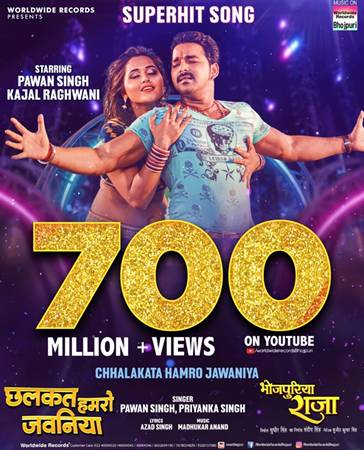 वर्ल्डवाइड रिकॉर्ड्स का फर्स्ट भोजपुरी गाना ‘छलकत हमरो जवनिया’ ने 700 मिलियन व्यूज  किया पार