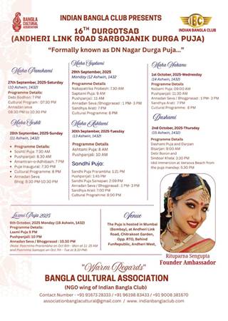 Indian Bangla Club presents Andheri Link Road Sarbojanik Durga Puja 2025