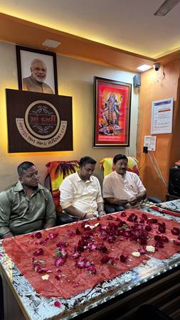 सूरत : विजया दशमी के पावन अवसर पर भारत रक्षा मंच सूरत महानगर द्वारा एक भव्य कार्यक्रम का आयोजन किया गया। इस अवसर पर डॉ. स्मित राणा और श्री भगवान झा ने विशेष रूप से उपस्थिति दर्ज कराई, शस्त्र पूजन किया और सभी देशवासियों को विजयादशमी की हार्दिक शुभकामनाएँ दीं।