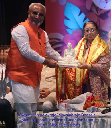 इसी दौरान अक्कलकोट के स्वामी जंजमेयराजे विजयसिंहराजे भोसले महाराज ने विनम्रता से कहा —“आज यहां उपस्थित होना मेरे लिए आशीर्वाद के समान है। मंगेशकर जैसे महान परिवार का स्नेह और आशीर्वाद प्राप्त करना मेरे लिए सम्मान है।”उनके यह शब्द आशीर्वाद नहीं, विनम्रता से झुका हुआ मस्तक थे।